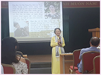 Nhà văn Lê Thị Minh trao đổi ý kiến
