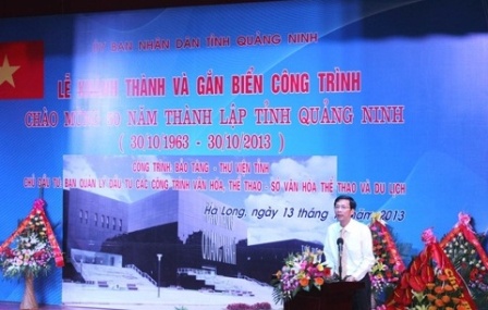 Thực hiện sự chỉ đạo của Tỉnh ủy, Hội đồng nhân dân, Ủy ban nhân dân tỉnh Quảng Ninh, ngày 13/10/2013, Ban Quản lý đầu tư các công trình văn hóa, thể thao tỉnh và Sở Văn hóa, Thể thao và Du lịch đã phối hợp tổ chức Lễ khánh thành và gắn biển công trình chào mừng 50 năm thành lập tỉnh cho cụm công trình Bảo tàng – Thư viện tỉnh.