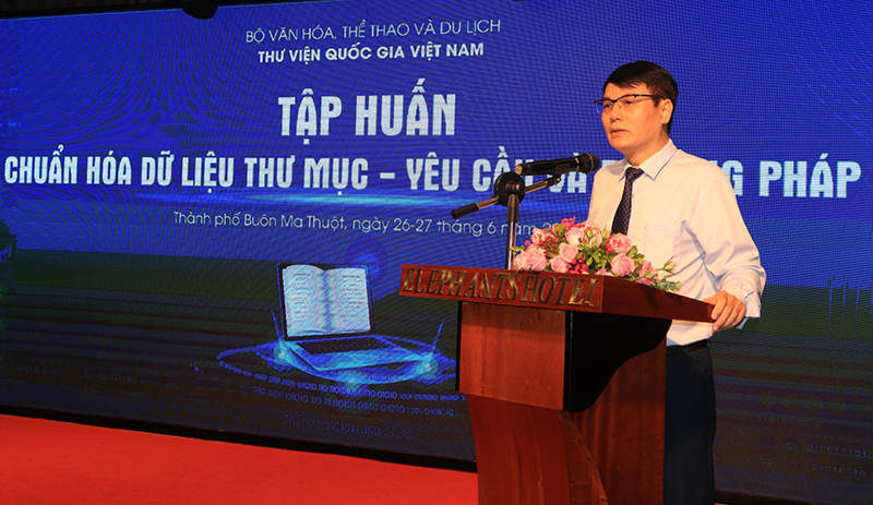 Thực hiện nhiệm vụ tại Quyết định số 2175/QĐ-BVHTTDL, ngày 23/7/2021 của Bộ trưởng Bộ Văn hóa, Thể thao và Du lịch về Kế hoạch triển khai Chương trình chuyển đổi số ngành thư viện đến năm 2025, định hướng đến năm 2030 và Kế hoạch công tác của đơn vị năm 2024, từ ngày 26-27/6/2024, tại thành phố Buôn Ma Thuột, tỉnh Đắk Lắk, Thư viện Quốc gia Việt Nam (TVQG) tổ chức lớp Tập huấn “Chuẩn hóa dữ liệu thư mục – Yêu cầu và Phương pháp”.