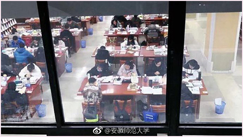 Mới đây, những bức ảnh được chụp tại trường Đại học An Huy (tỉnh An Huy, Trung Quốc) đã được đăng tải trên mạng xã hội và thu hút được sự chú ý của nhiều người. Cụ thể, chúng ghi lại hình ảnh thư viện tại trường Đại học chật kín như nêm, ai ai cũng đang tập trung cao độ học hành dù thực tế trường đã cho phép nghỉ Tết từ vài ngày trước.